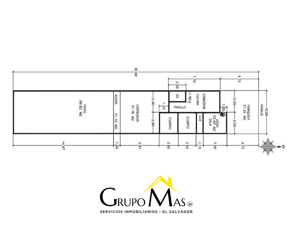 Terreno: 315 V2 (6m al frente x 36 m de fondo aprox)